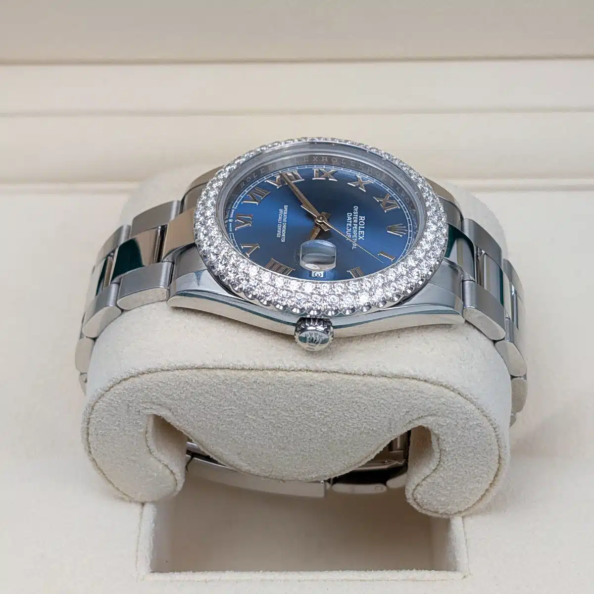 Rolex 41mm Blue Roman Dial Aftermarket Diamond Bezel Oyster