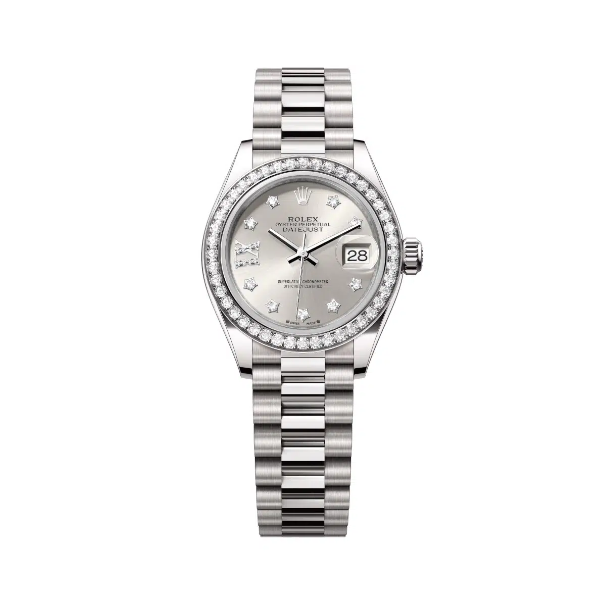 Rolex Lady-Datejust 279139RBR-0003 28mm Silver Set with Diamonds Dial Diamond-Set Bezel 18kt White Gold President Bracelet Watch